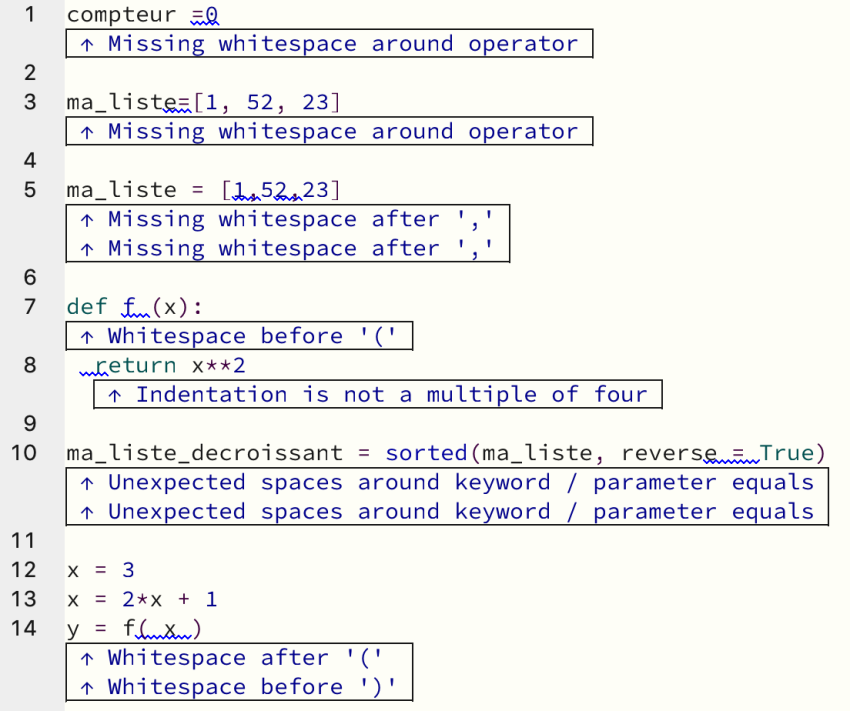 À noter : Le logiciel Mu comporte un outil de vérification du code qui applique rigoureusement les recommandations de la PEP8.