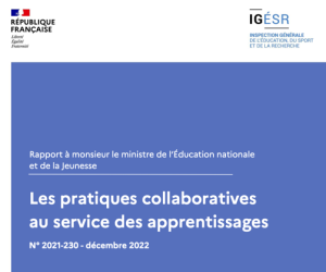 Les pratiques collaboratives au service des apprentissages, un rapport de l’inspection générale (décembre 2022) : https://www.education.gouv.fr/les-pratiques-collaboratives-au-service-des-apprentissages-344236
